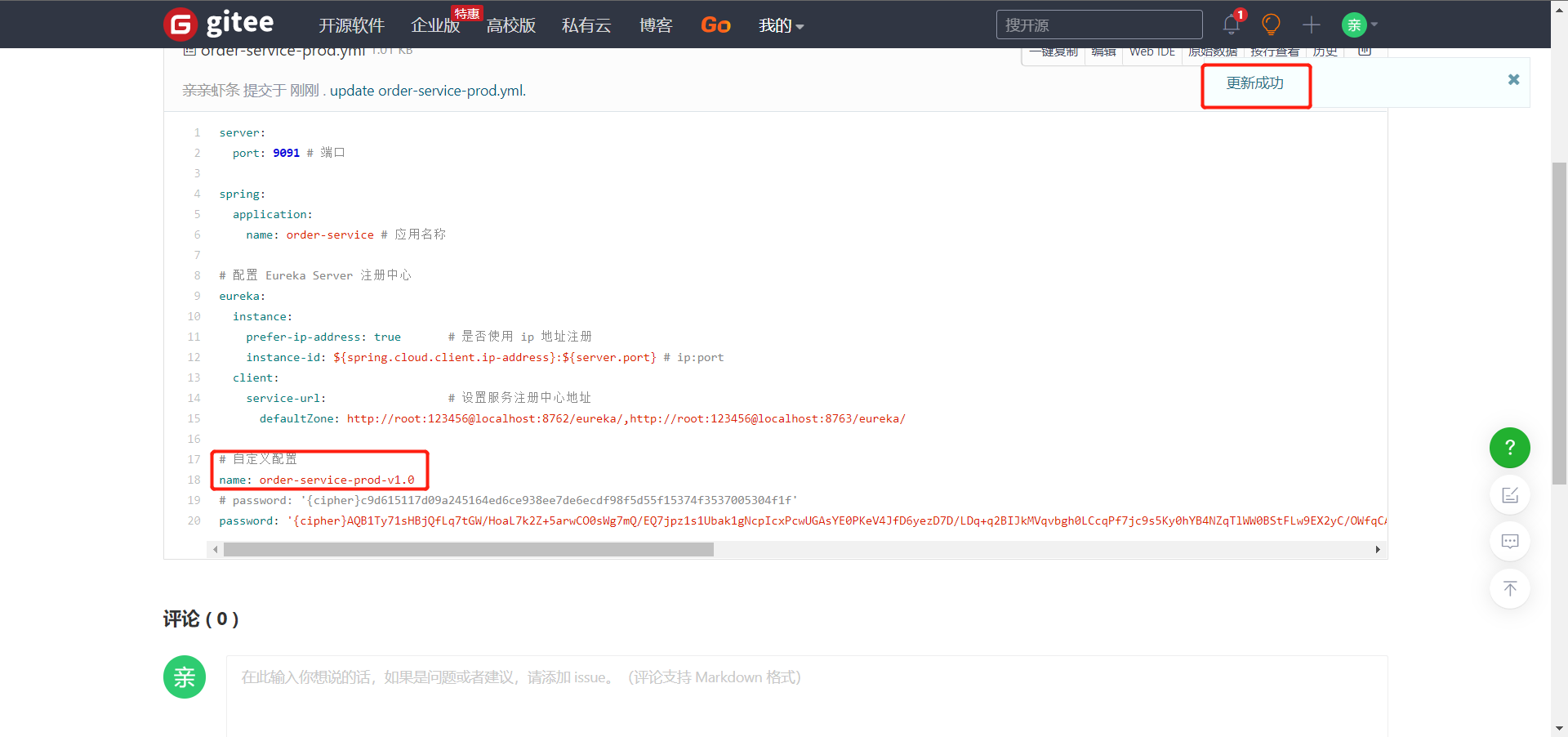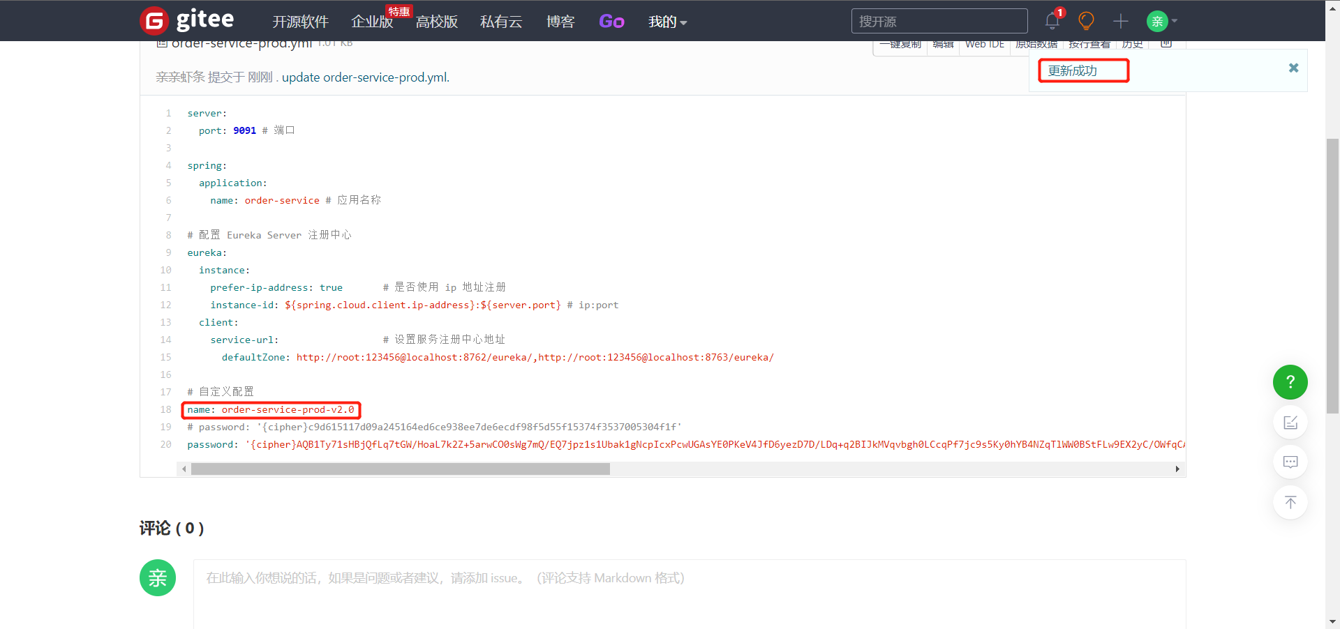 通过 POST方式调用任意服务端的自动刷新端点:http://localhost:8888/actuator/bus-refresh/order-service:9091 再次访问结果如下: